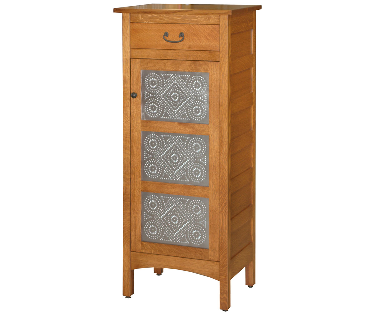 • Reversed panel wood door in place of the tin