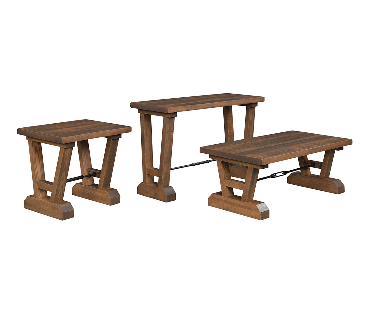 Dimensions: Sofa Table: 48”W x 18”D x 29”H Coffee Table: 48”W x 24”D x 18”H End Table: 26”W x 22”D x 24”H